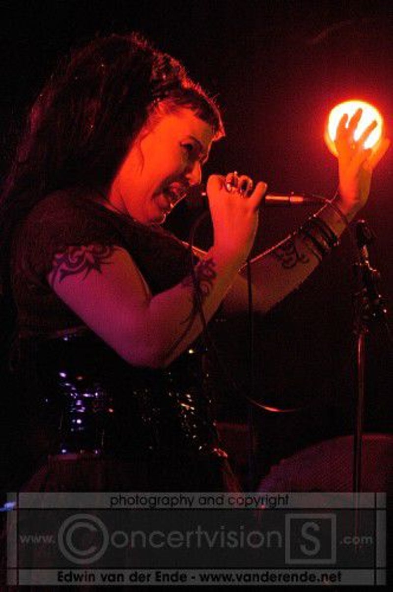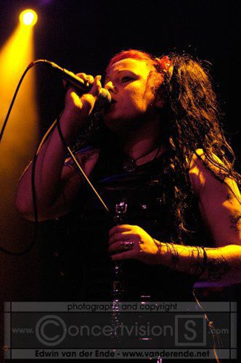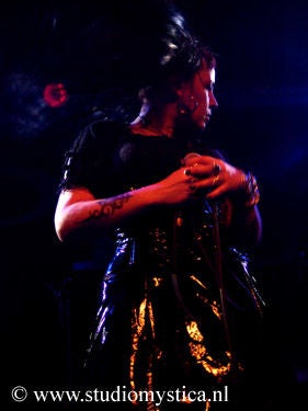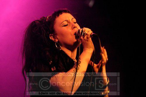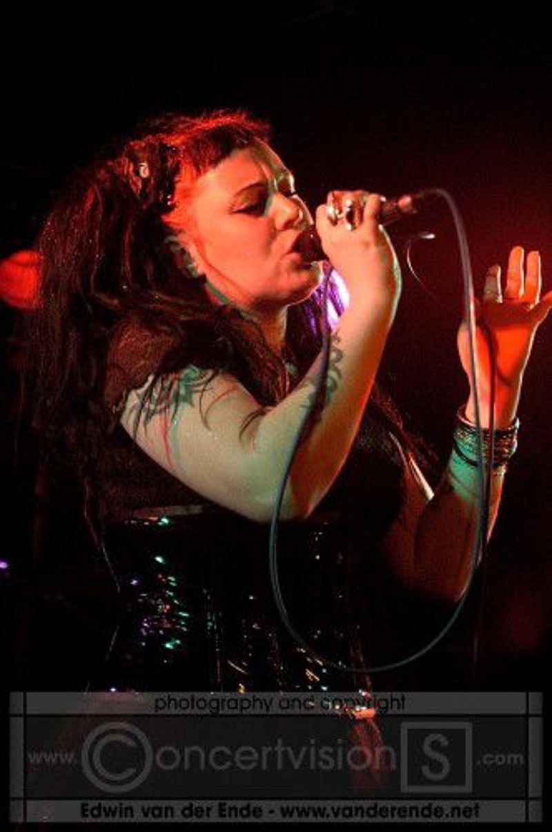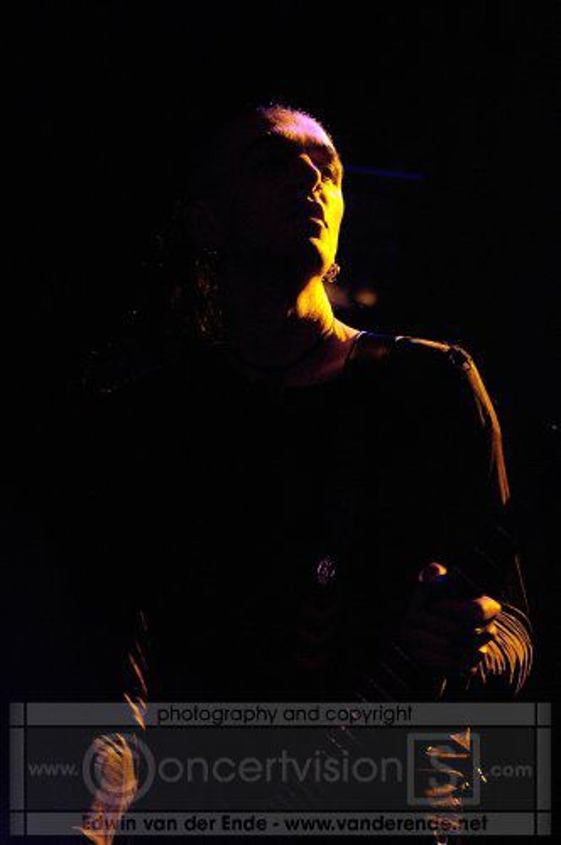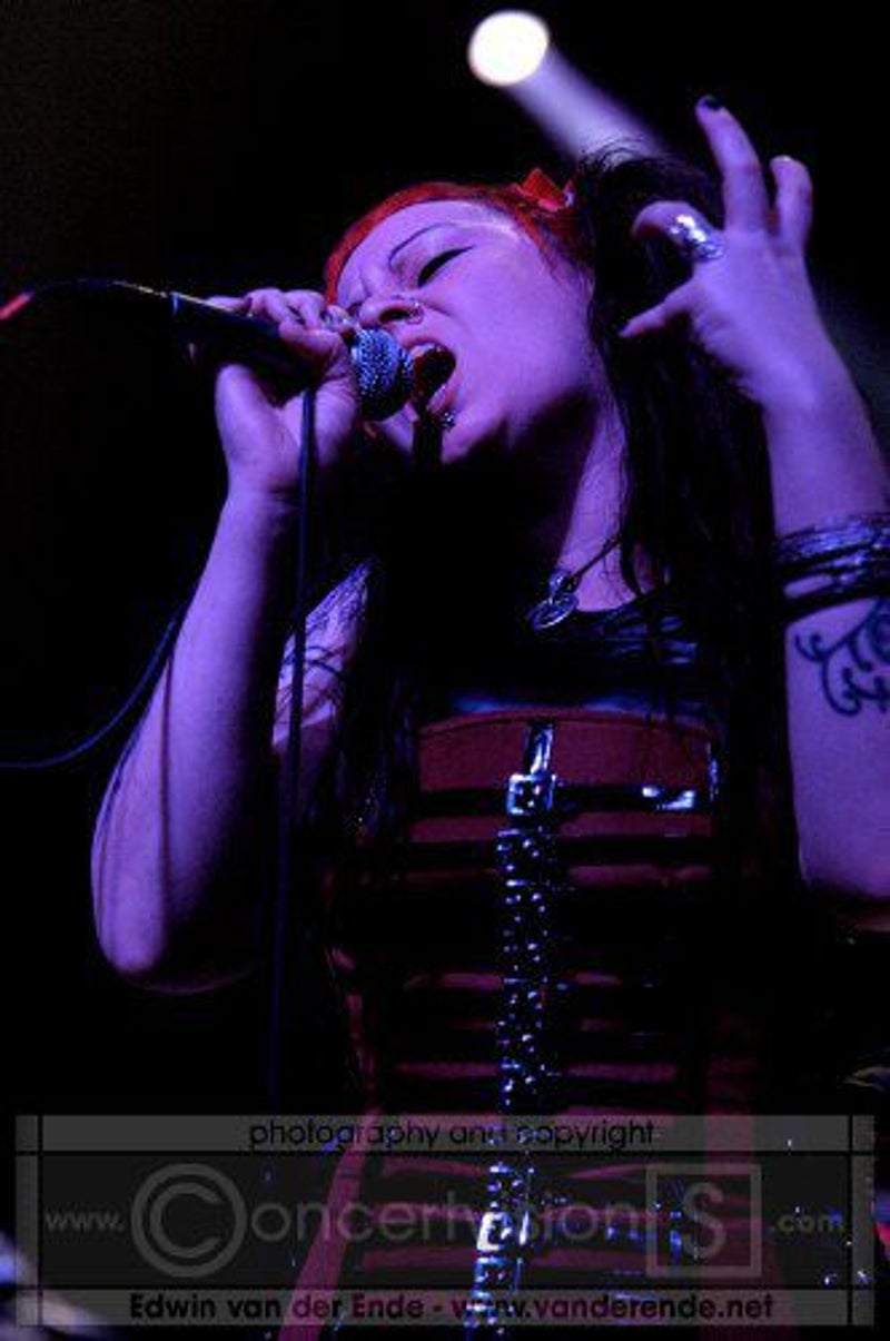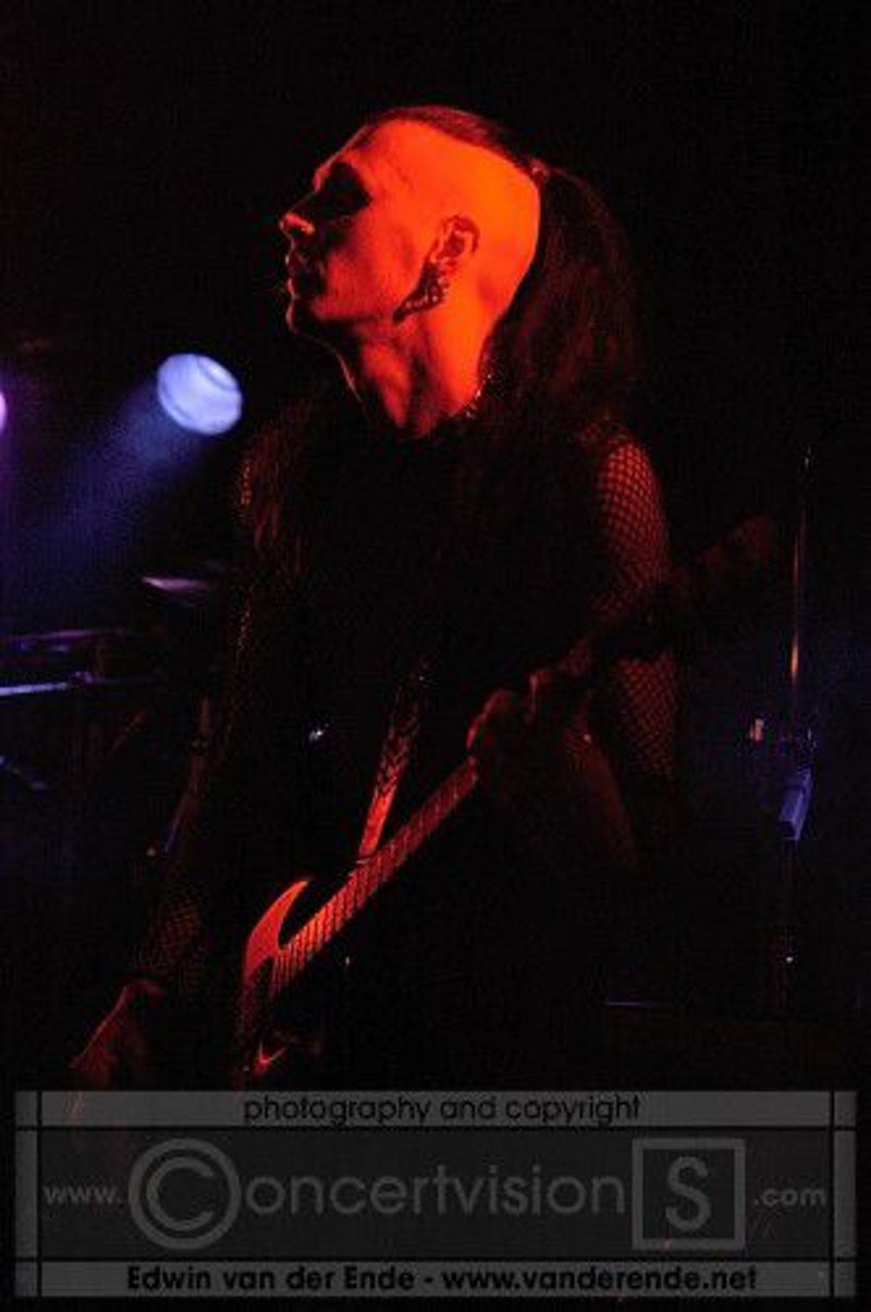 Soft whispers calling ‘Asraiiii, Asraiiii’ and a wind like sound announced the performance of the first band of this evening had begun. Margiet, with a huge amount of glitters al over her hair is the strong leading lady of this band, her fire shooting eyes and constrained fingers show us the passion she is feeling while singing her lines. This evening however the guitarists caught my eye as well. Martin (bass) seemed to be making love to his guitar, I can just imagine him caring for his guitar as if he were married to it. Rik (guitar) was completely at one with his guitar, he held it as close to him as possible.
