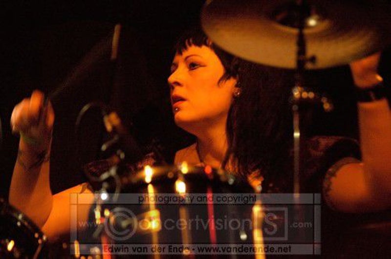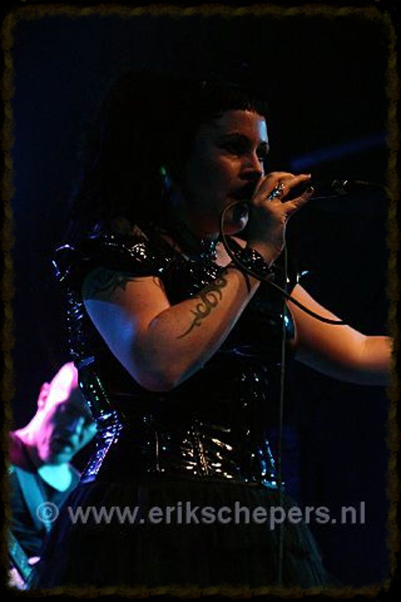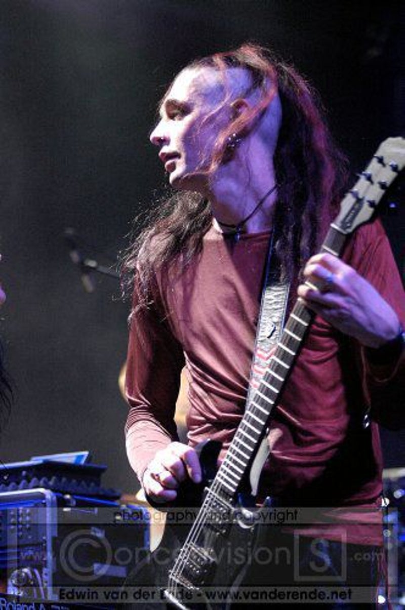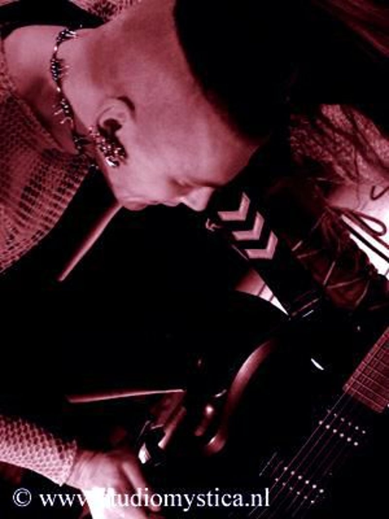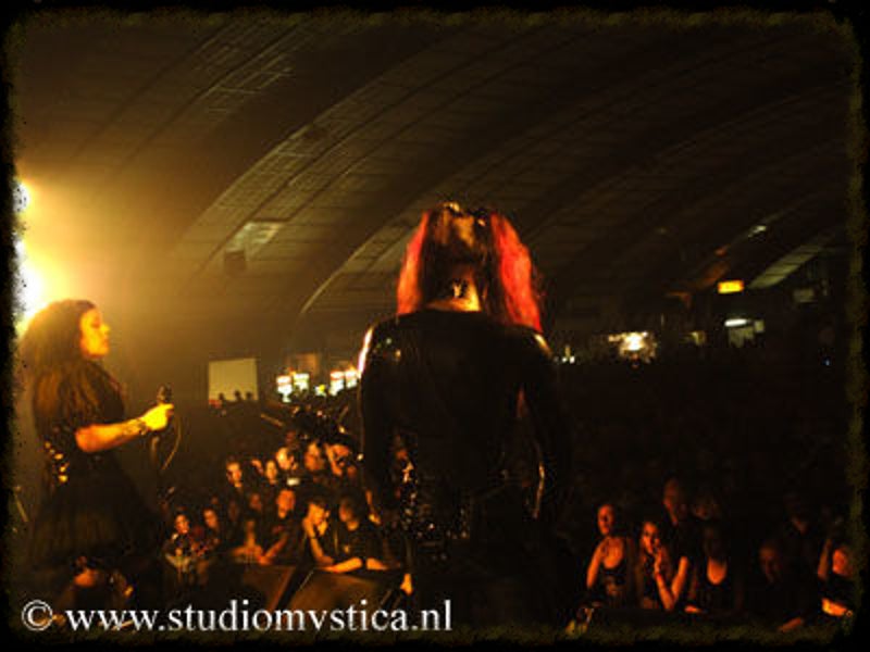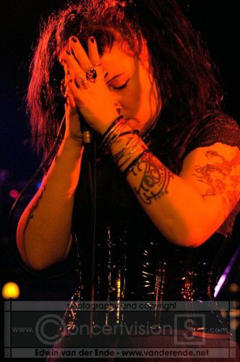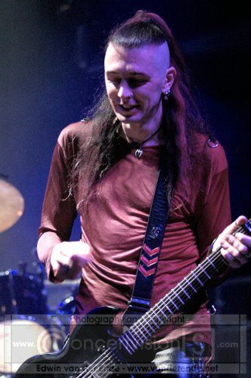 Soft whispers calling ‘Asraiiii, Asraiiii’ and a wind like sound announced the performance of the first band of this evening had begun. Margiet, with a huge amount of glitters al over her hair is the strong leading lady of this band, her fire shooting eyes and constrained fingers show us the passion she is feeling while singing her lines. This evening however the guitarists caught my eye as well. Martin (bass) seemed to be making love to his guitar, I can just imagine him caring for his guitar as if he were married to it. Rik (guitar) was completely at one with his guitar, he held it as close to him as possible.