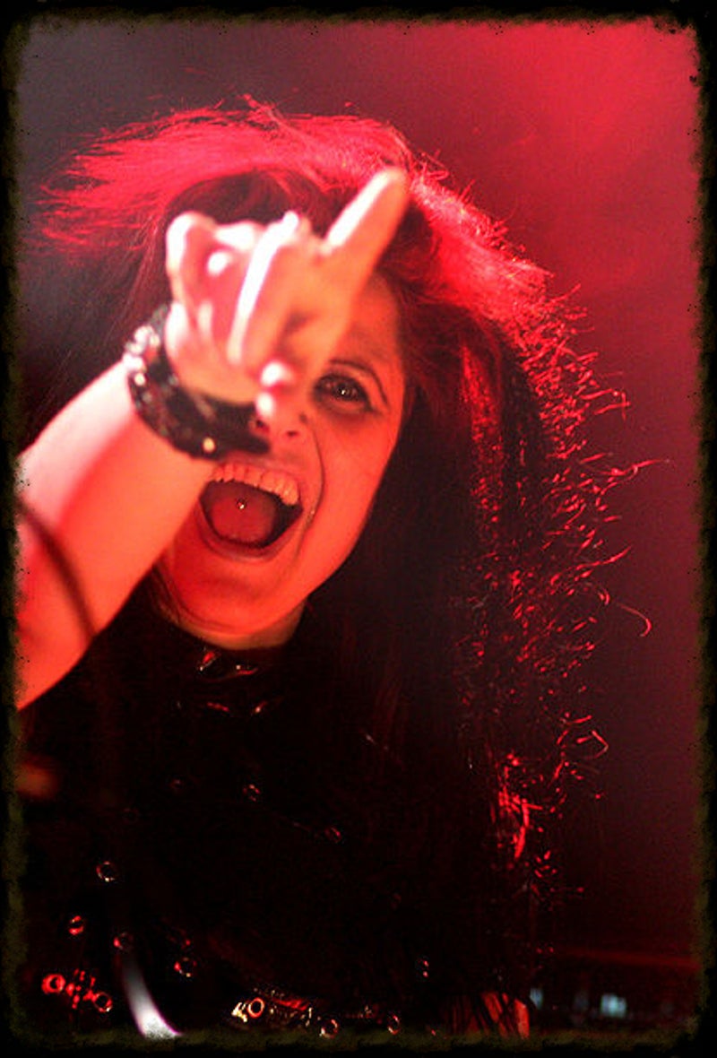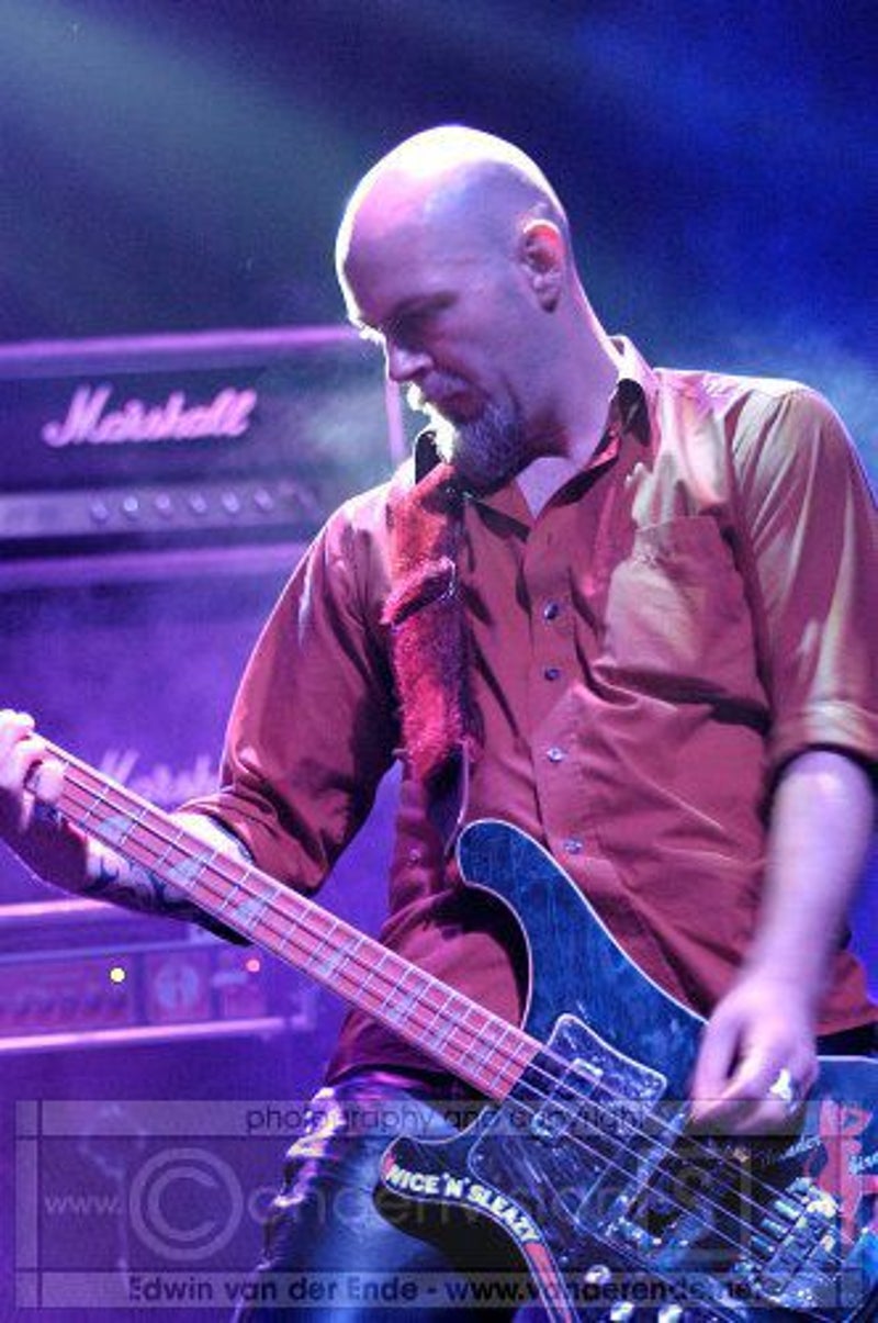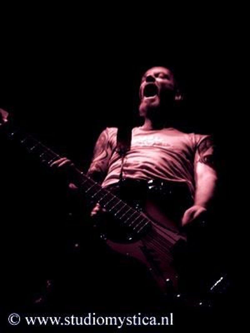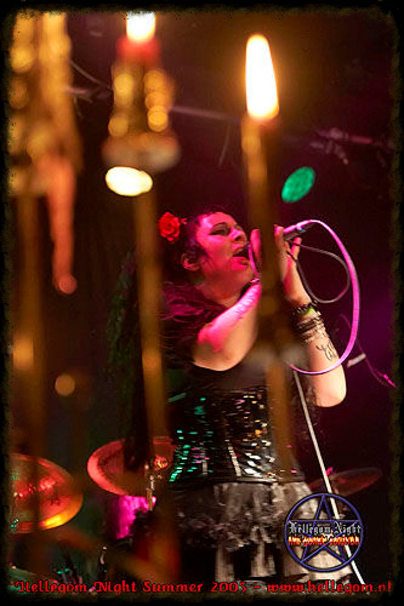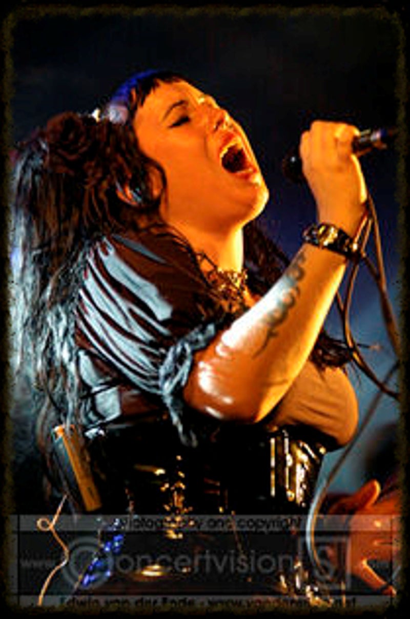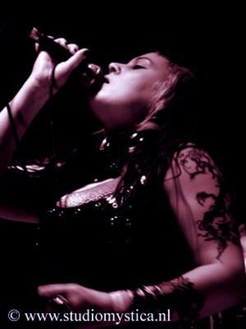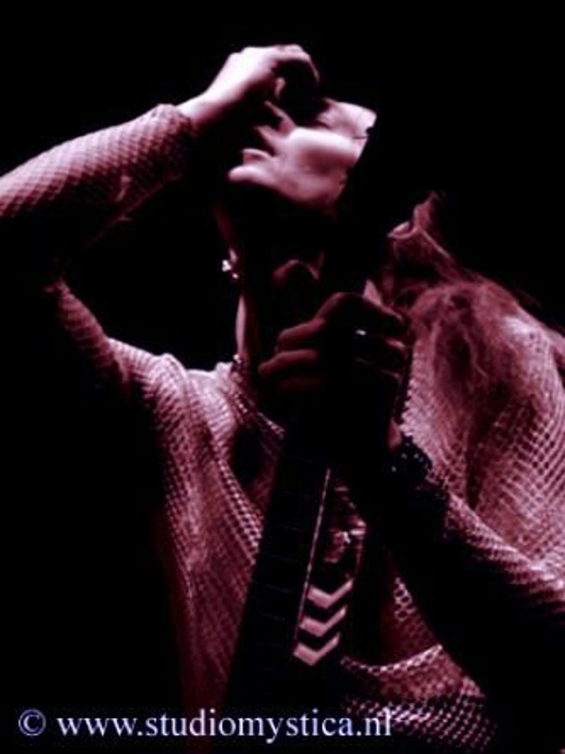 Soft whispers calling ‘Asraiiii, Asraiiii’ and a wind like sound announced the performance of the first band of this evening had begun. Margiet, with a huge amount of glitters al over her hair is the strong leading lady of this band, her fire shooting eyes and constrained fingers show us the passion she is feeling while singing her lines. This evening however the guitarists caught my eye as well. Martin (bass) seemed to be making love to his guitar, I can just imagine him caring for his guitar as if he were married to it. Rik (guitar) was completely at one with his guitar, he held it as close to him as possible.